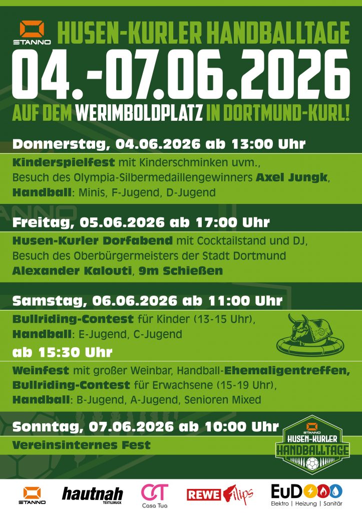 Die Vorfreude steigt: Vom 4. bis 7. Juni 2026 verwandelt sich der traditionsreiche Werimbold-Sportplatz in Dortmund-Kurl erneut in einen Treffpunkt für Handballbegeisterte aus der gesamten Region. Die STANNO Husen-Kurler Handballtage stehen vor der Tür – und schon jetzt zeichnet sich ein echtes Highlight im Jugend- und Breitensportkalender ab.